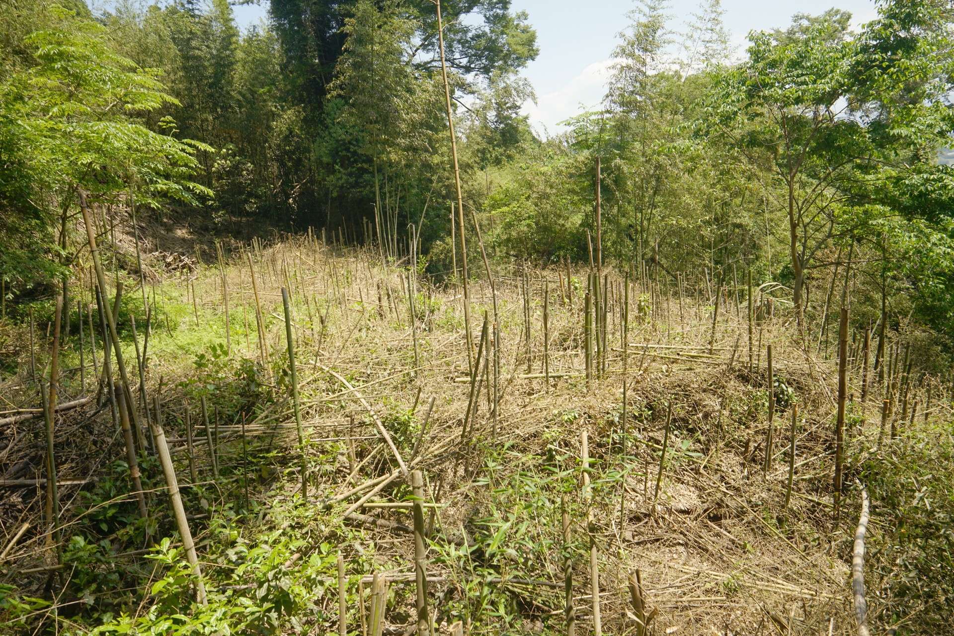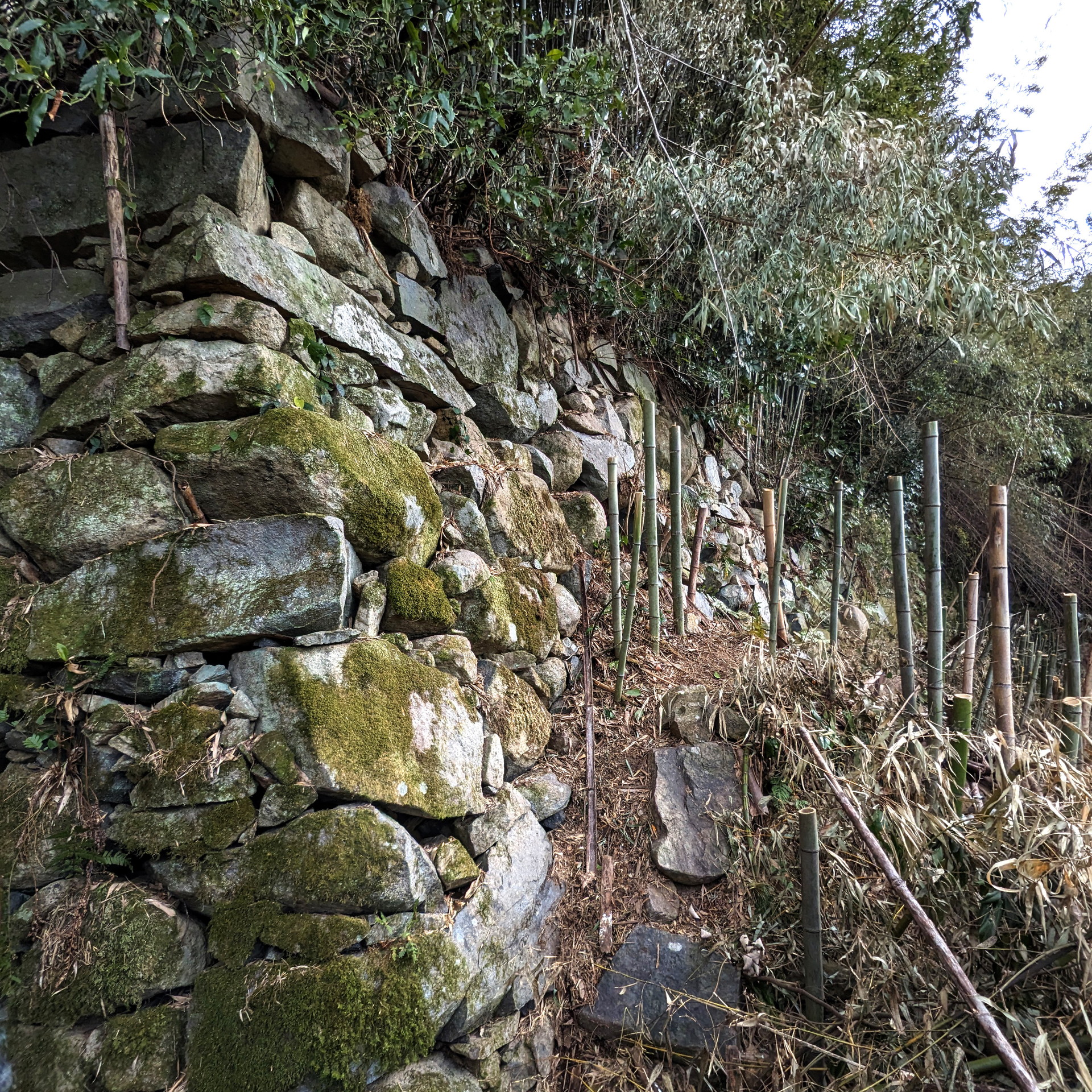 この道筋の写真は、観音寺城-大手道を登る 、観音寺城-追手道から大手道へ 、観音寺城跡-2022-04-16 午後の部 にも掲載していますのでご覧ください。またこの道筋で行われている、竹の伐採方法については、1メートルの高さで竹を刈る をご覧ください。