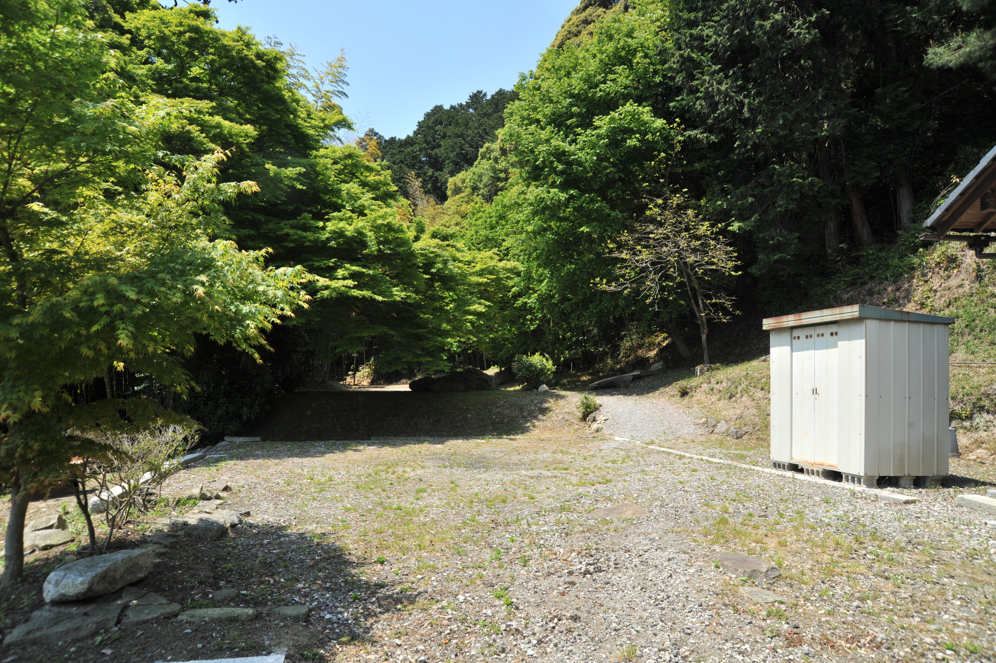 この御茶屋平の北側の通路を抜けたあたりにはお堂があり、ここで道は二手に分かれています。その道の一方は中腹を安土城の中心部に向い、もう一方は尾根筋に向っています。安土城跡の案内図にはこの尾根筋の道沿いに、神様平と馬場平の 2つの削平地が示されています。