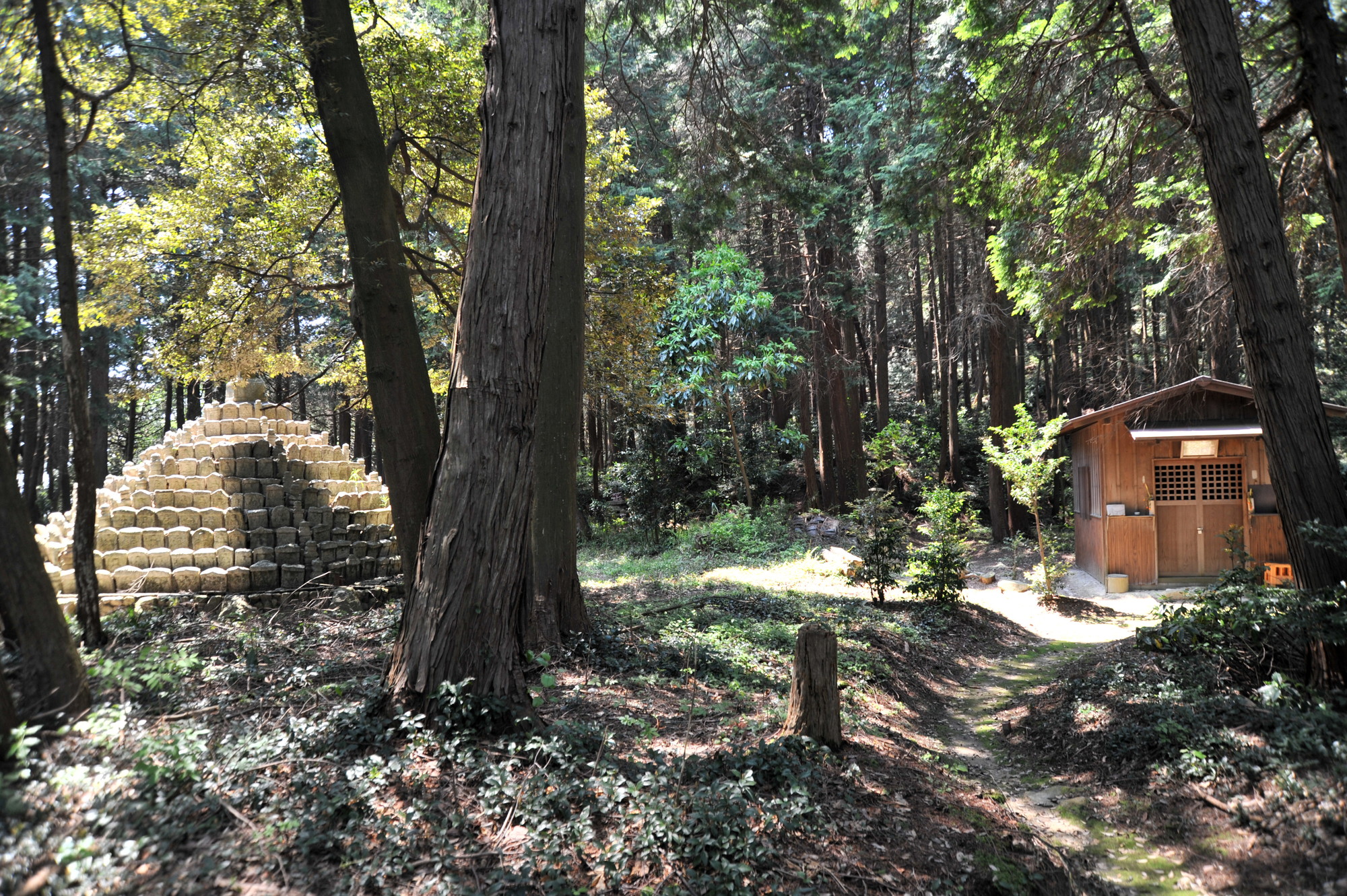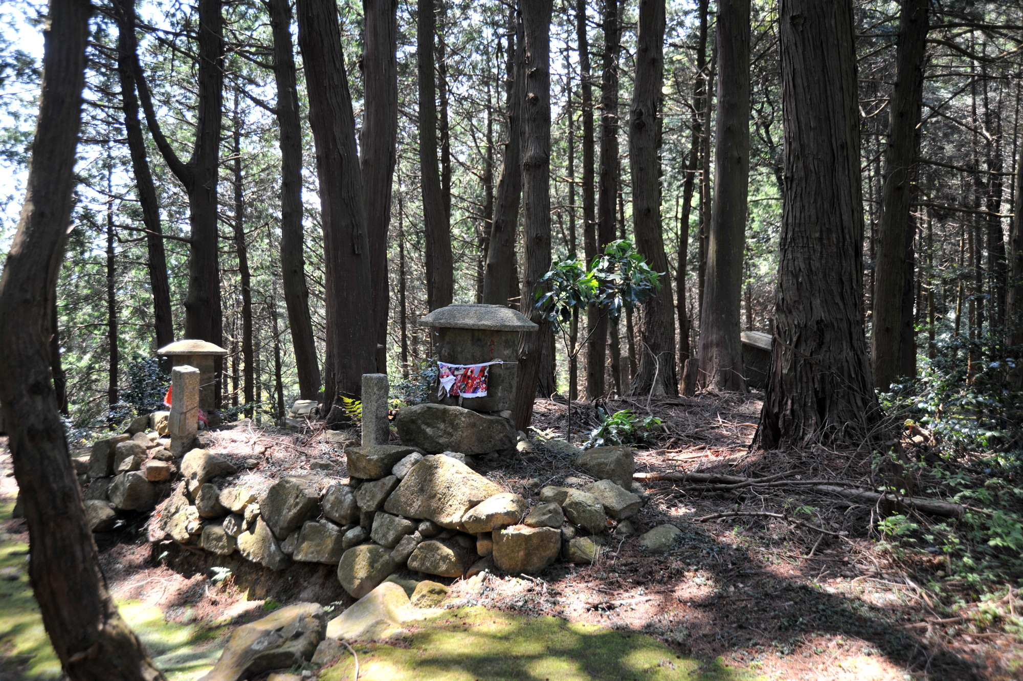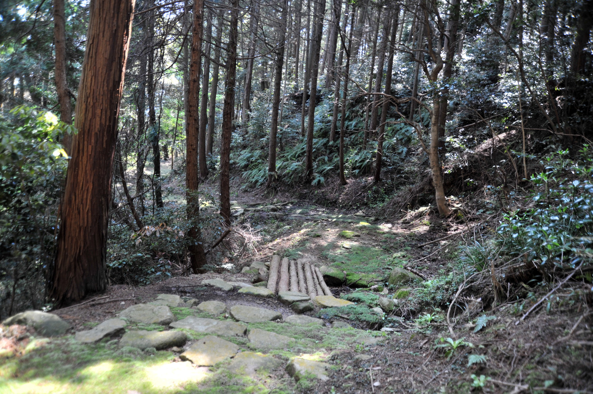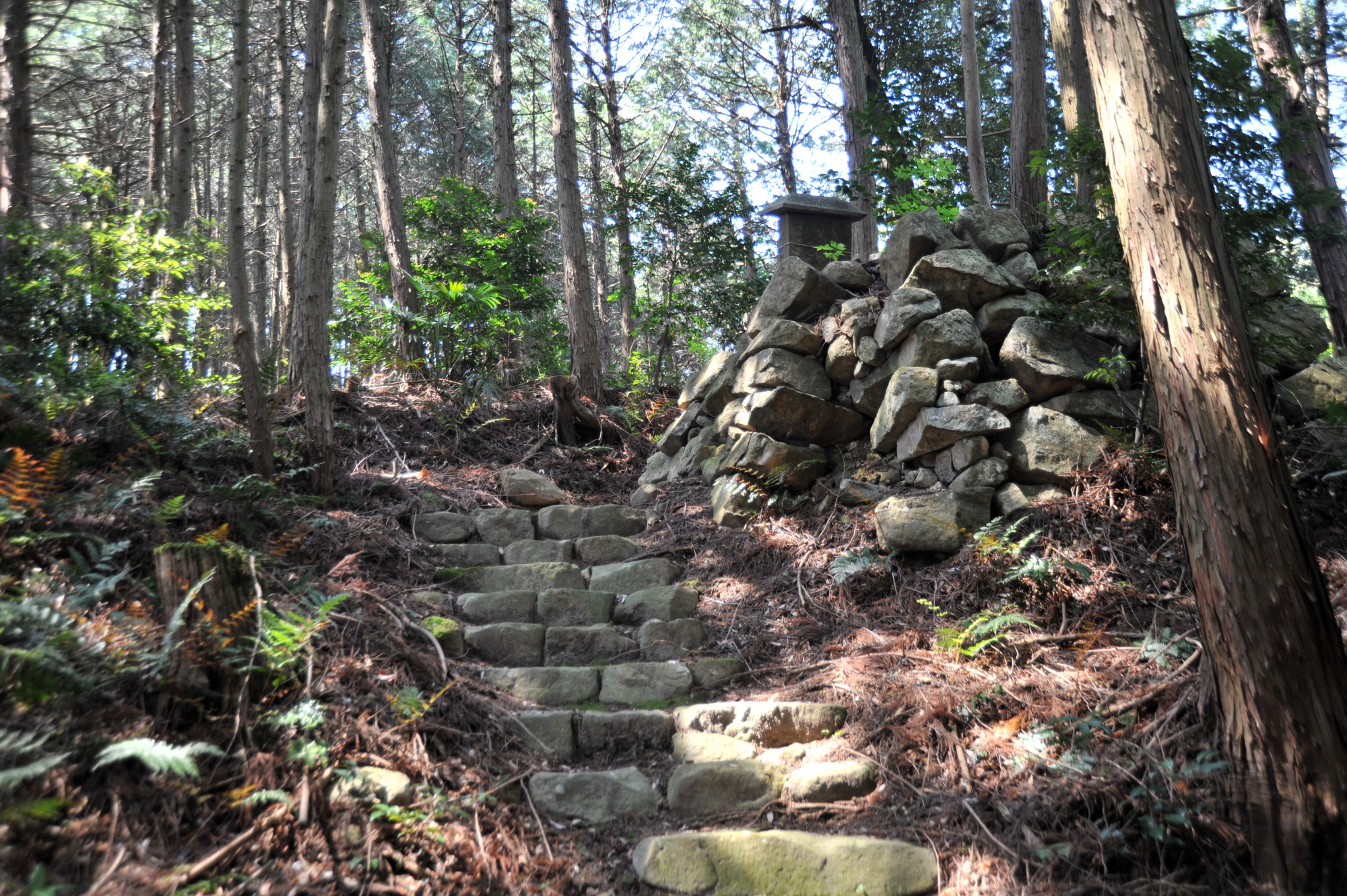 すぐその先には削平地があります。ここは御茶屋平と呼ばれる郭の跡地ですが、現在では四国八十八カ所巡りの起点を象徴するかのように、多くの石仏がピラミッドのように積み上げられれています。何とも不思議な光景です。