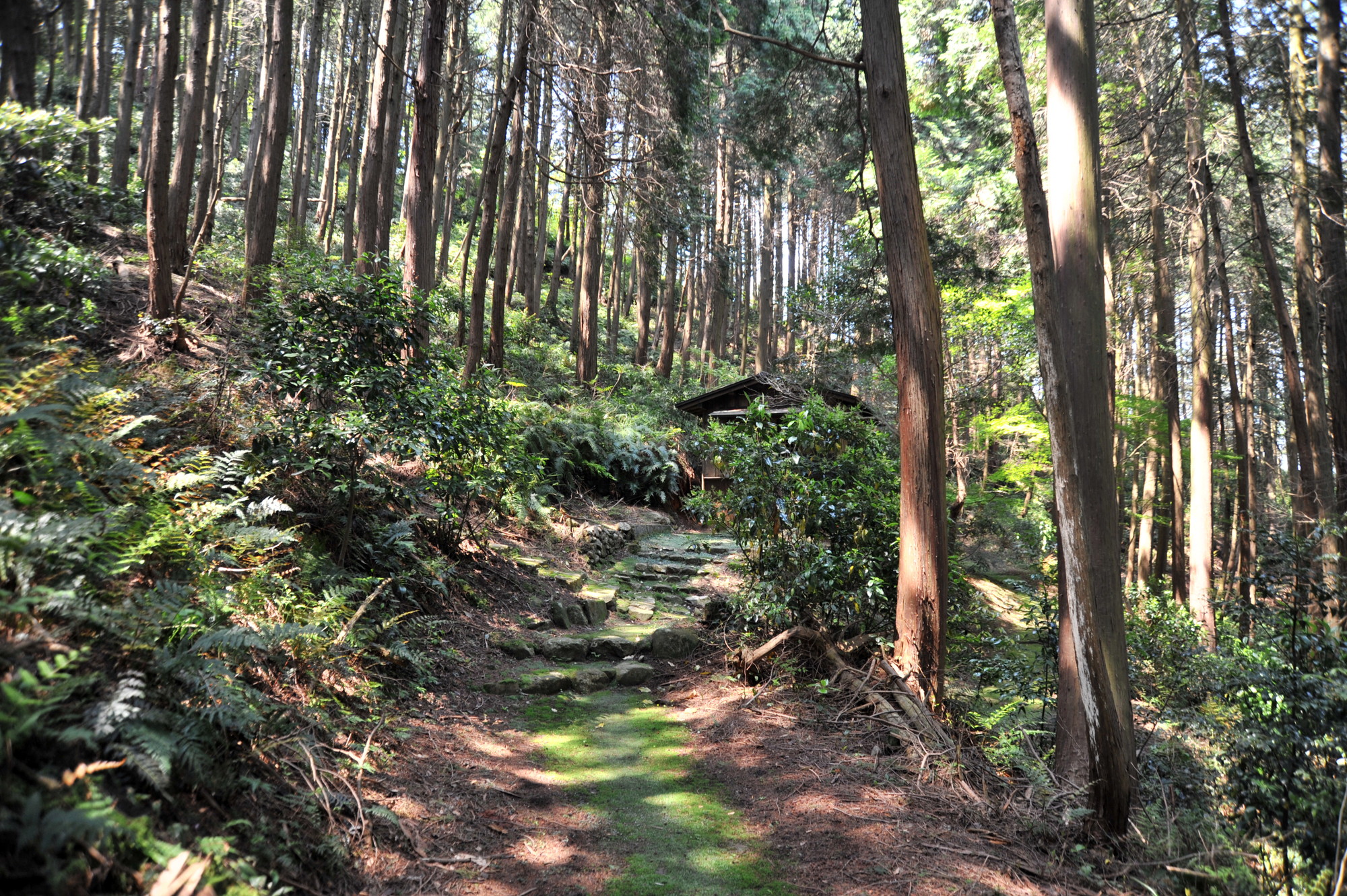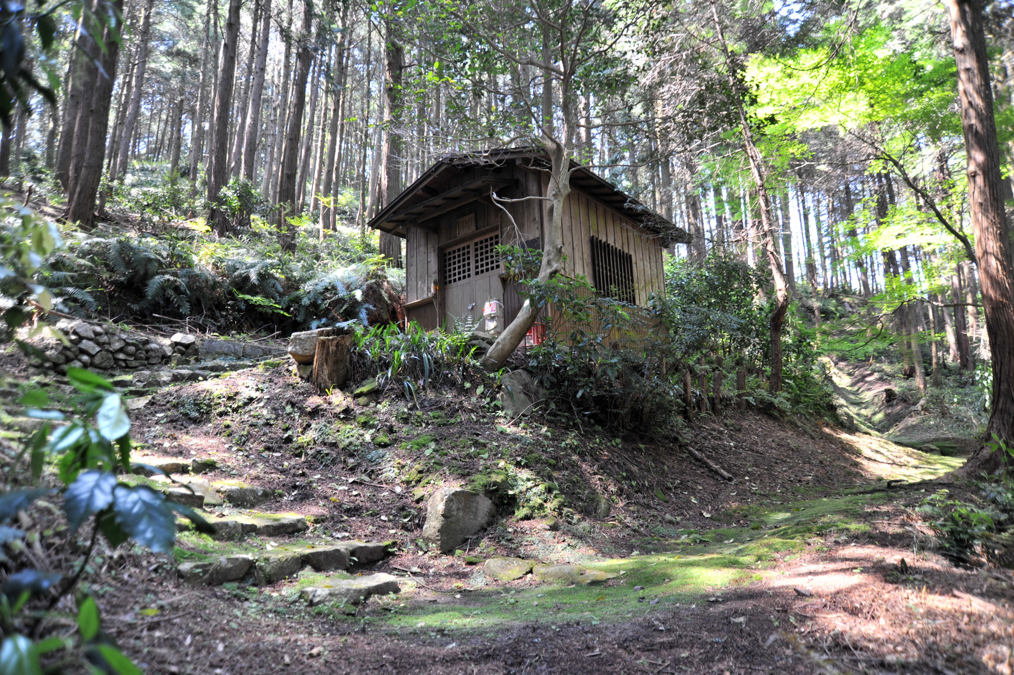 現在では、松源院弘法大師堂からしか入れませんのでまずここから入ります。松源院弘法大師堂の前を通り石の階段を登りとすぐに石仏に出会い、この道が霊場巡りのミニ巡礼道として使われてている事が分かります。調べてみるとこの巡礼道は、1849年に五個荘の安福寺の寿仙という尼僧が発起人となり、賛同者の寄付により大正八年に整備されたという情報がありました。