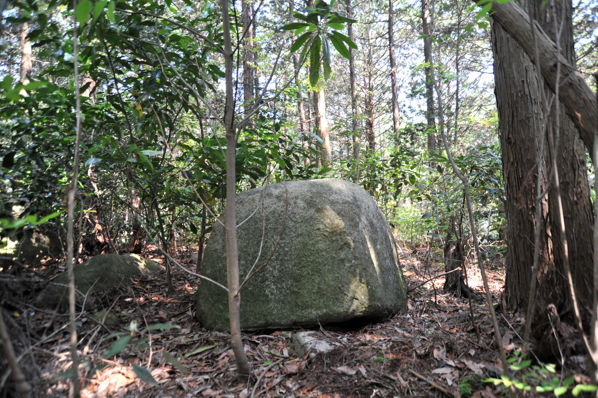 少し進むと尾根に到達します。道幅は広がり苔むしています。風情があり歩きやすい道です。少し進んだところで道は稜線を少し南側に逸れます。そこで稜線に登ってみると削平地があり、角の丸い四角い大きな石が意味ありげに鎮座しています。おそらくこのあたりが神様平と呼ばれているところなのではないかと思います。