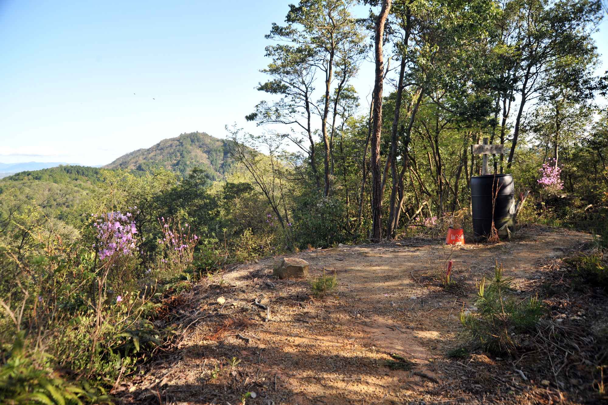 げしめ展望台を超えるとすぐに見晴らし良い山頂に出ます。このあたりもげしめと呼ばれています。このげしめの山頂には山裾とを結ぶしっかりした散策道が新に設けられてており、山裾の集落や周囲の山々などの風景を楽しみながら下山する事もできます。
