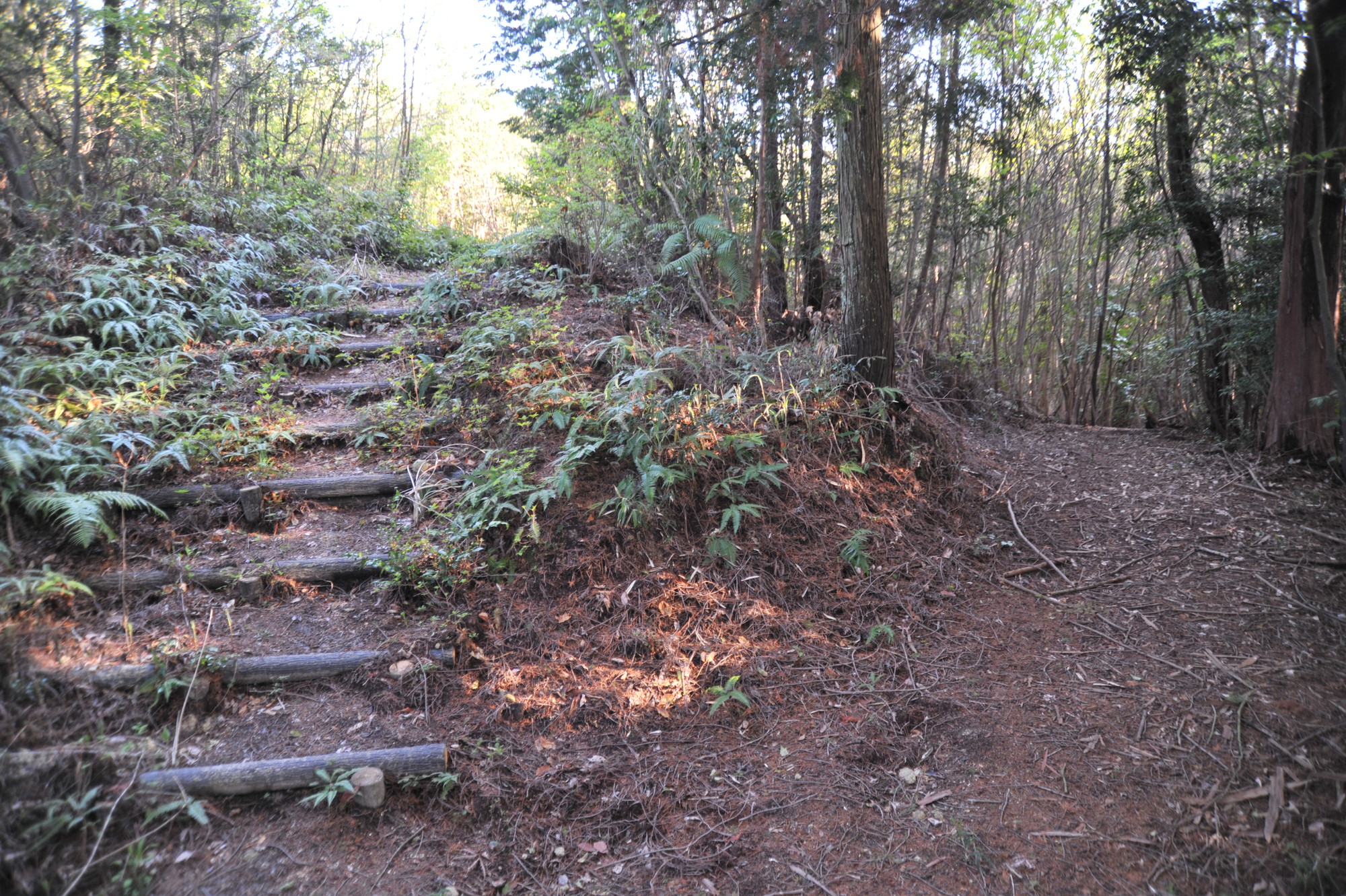 このルートは尾根筋まで 50mくらいしかなく昔は尾根との行き来に良く使われていたのではないかと思います。またこの山には 多くの古墳 があり、この道は 栗木山古墳群 中央付近を通っています。