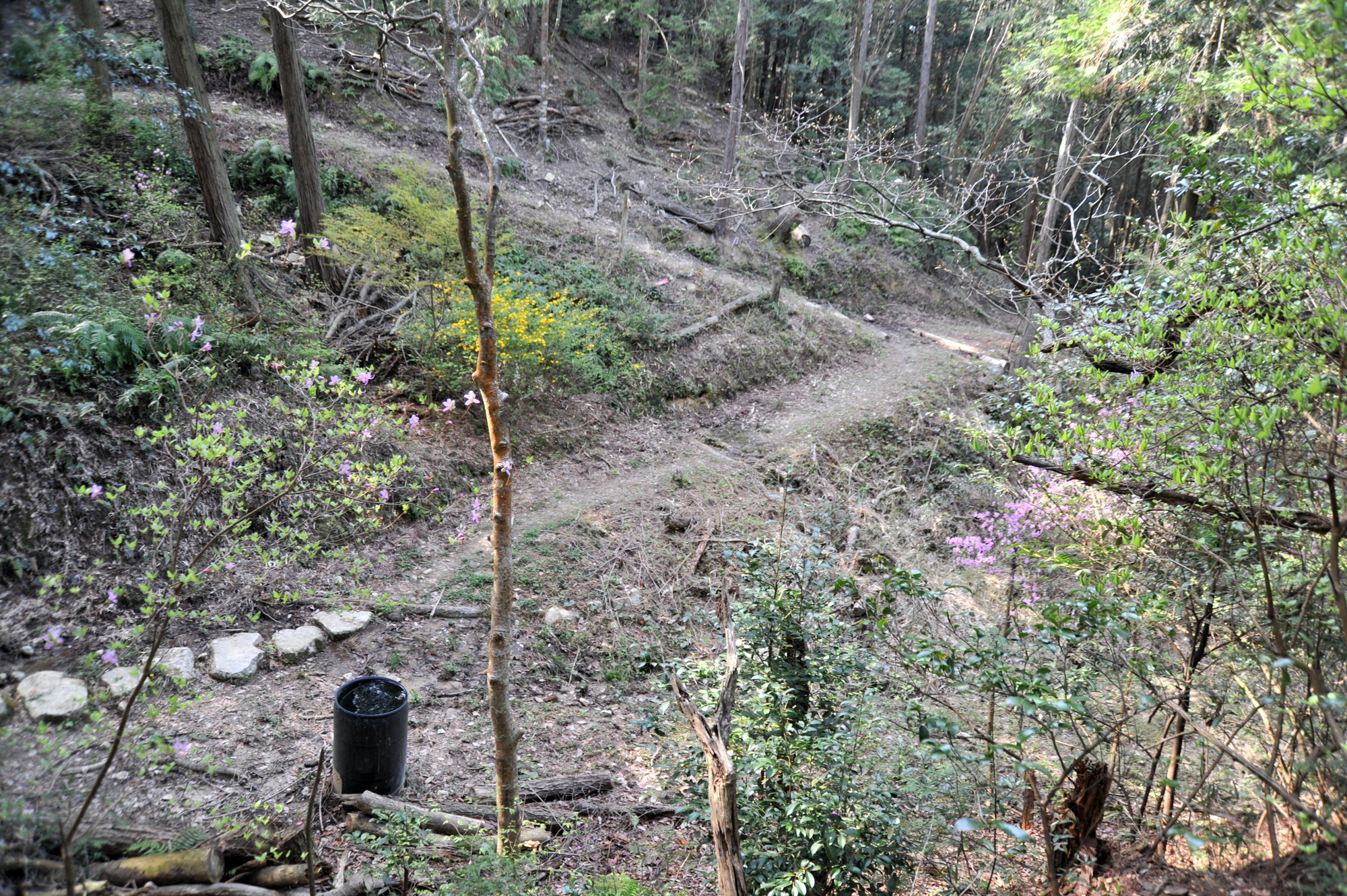 さらにその先を 5分ほ行ったところに “げしめ展望台” があります。げしめ展望台の前には谷があり、山裾からこのげしめの谷を通って尾根筋との間を行き来していました。