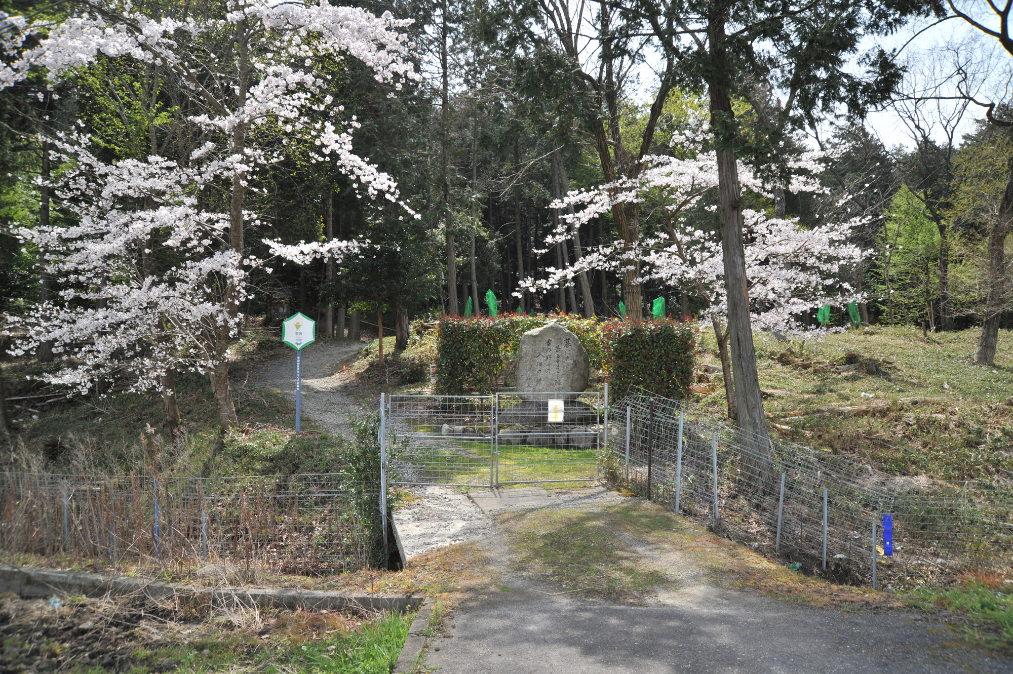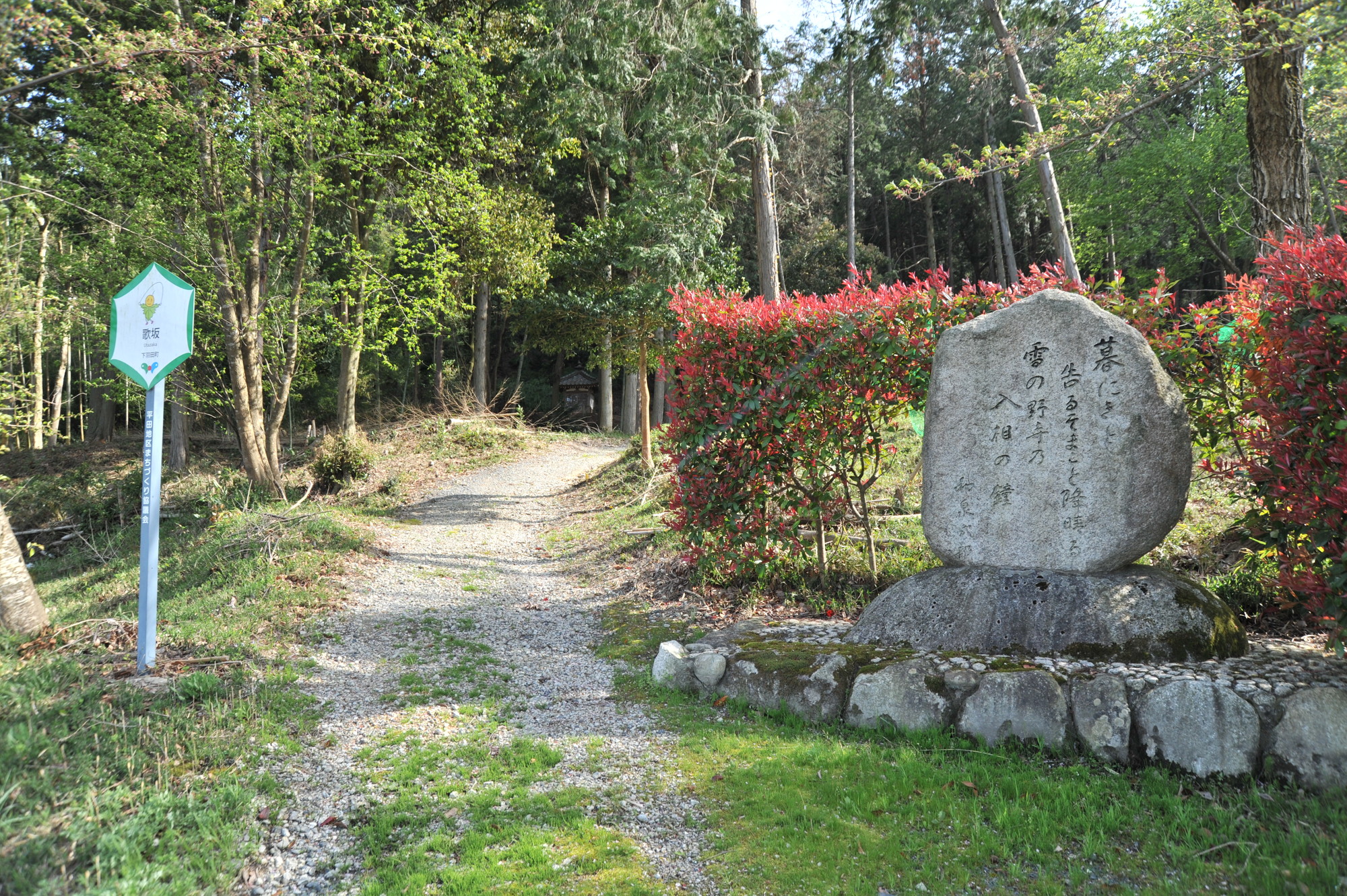 この三叉路を下った山裾には和泉式部の歌碑がありますが、尾根筋を縦走する場合にはこの三叉路を左に折れて坂道を上ります。ここでは尾根筋を紹介していますが、せっかくですので、歌碑の写真も載せておきます。