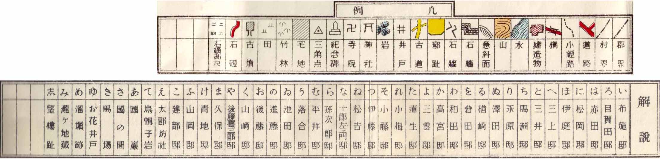 この地図には多くの郭と共にその郭の主の名が示されています。昭和 54年に出版された「まぼろしの観音寺城」(田中政三著)に綴じ込まれている 観音寺城址図 と比べてみたところ、描かれている郭の数は少ないものの、大きな食い違いはありませんでした。また郭によっては郭主の名が、苗字で書かれていたり(下の)名で書かれたりしており、長束十郎左衛門の名についは、まぼろしの観音寺城(長束)と蒲生郡志(十郎左衛門)の両方の地図を見比べる事によって初めてフルネームがわかりました。