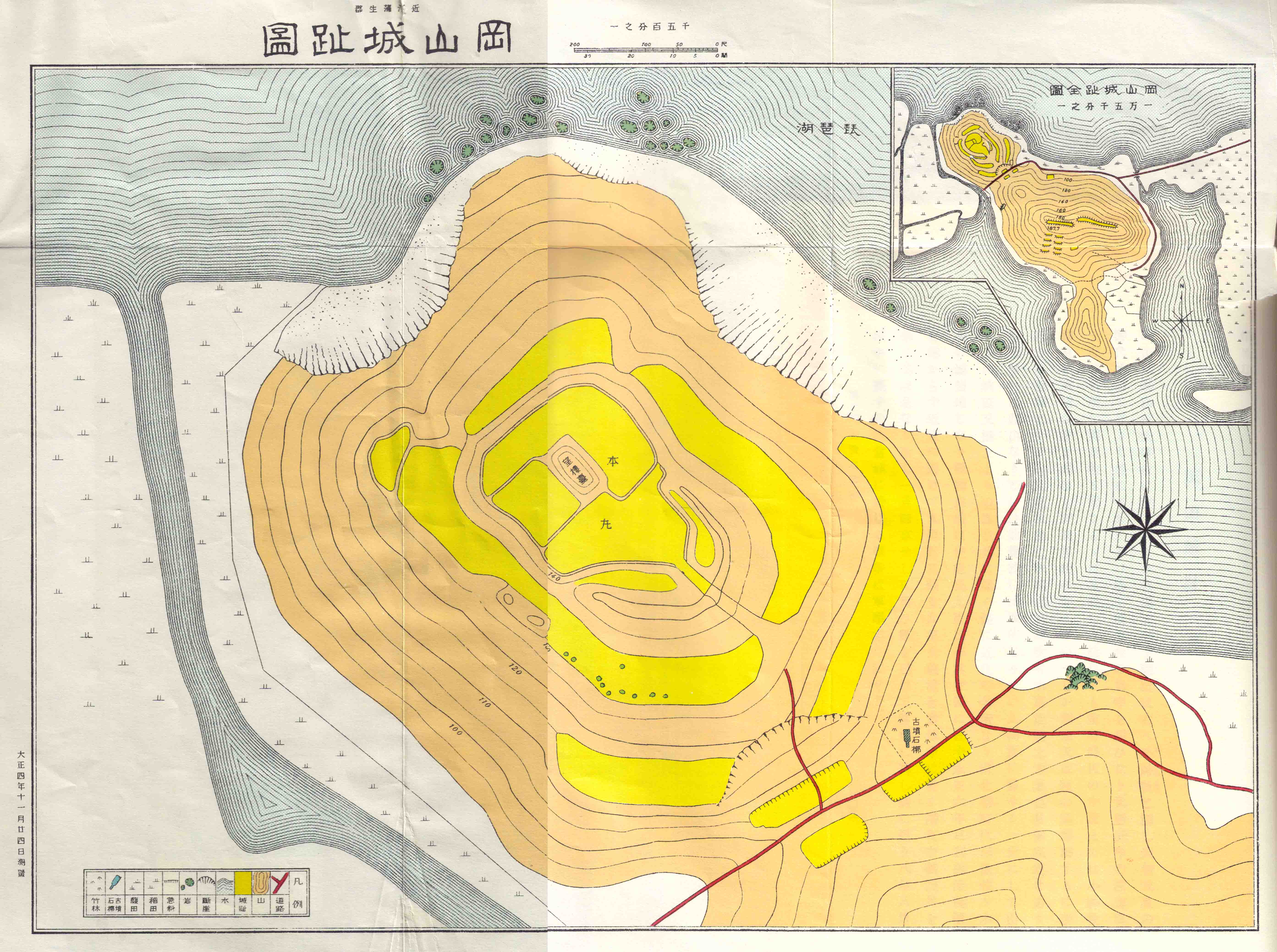 大正 4年の測量による、観音寺城の古地図
